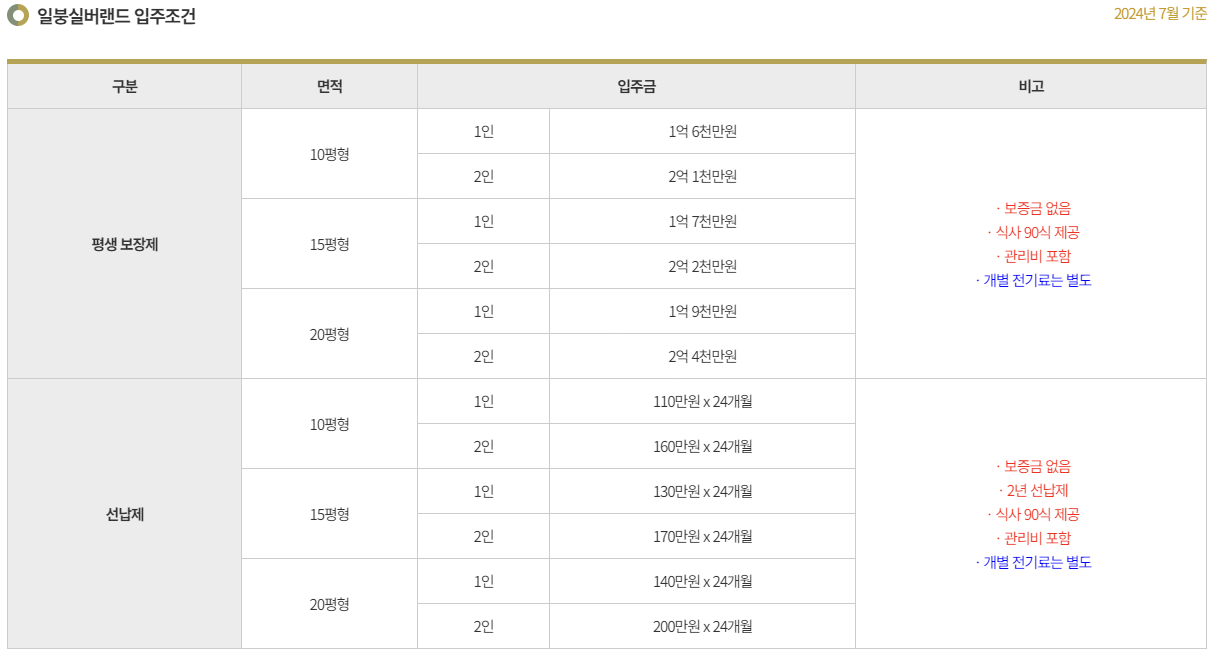 | 일붕실버랜드(종신) | 종신 | 2.1억 | - | - | 5만원 (전기료 별도) |