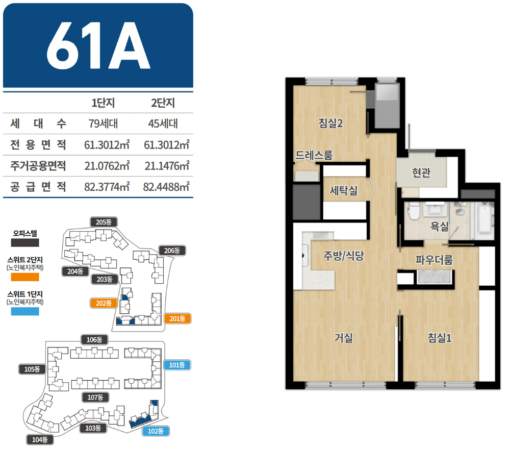 - 세대수 : 노인복지주택 총 536세대 - 1,2단지 합산 기준