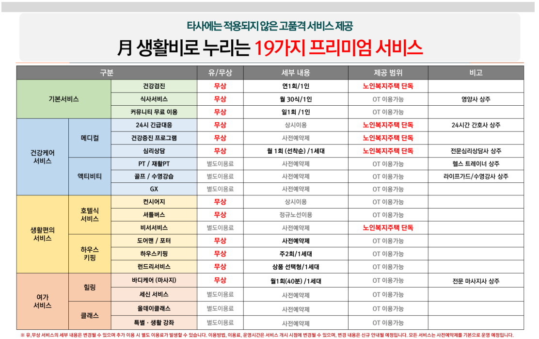 - 24시간 간호인력상주, 주2회 세대 청소 등 (무상)