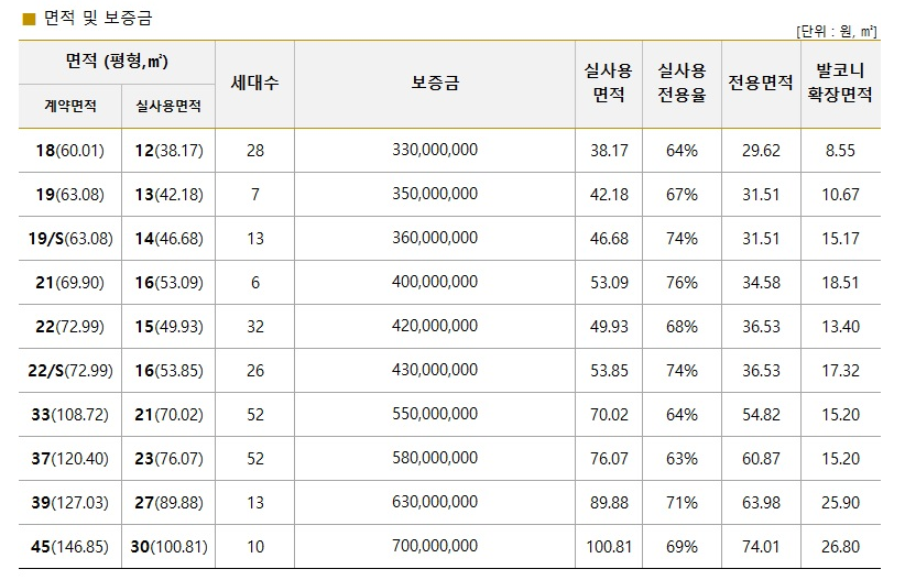 | 유당마을 | 3년 | 2억 | 356만원 | 포함 | 약30만원 (전기,급탕 냉난방별도) |