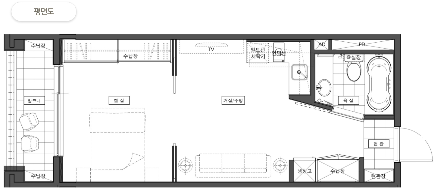※ 특별 프로모션 : 24년 9월~12월 계약자에 한해 의무 거주기간 적용 無 - 보증금 및 월세 기준 : 39 B type 전용면적 39.3㎡(약11.9평) 계약면적 73.4㎡(약 22.2평)기준(2인 기준)